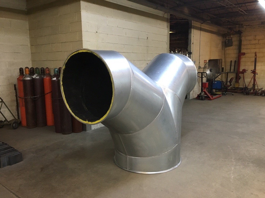 44" diameter at the base and 36" diameter on each side with 1" insulation. This is a great example of the extraordinary craftsmanship of our welding department. Great job guys!